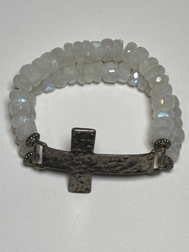 White fresh water pearls, 8-10mm, double strand, pounded silver extra large bracelet, stretchy