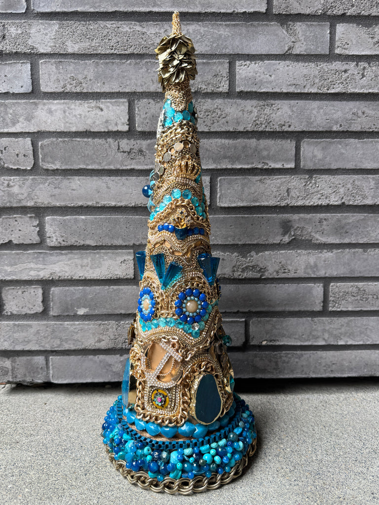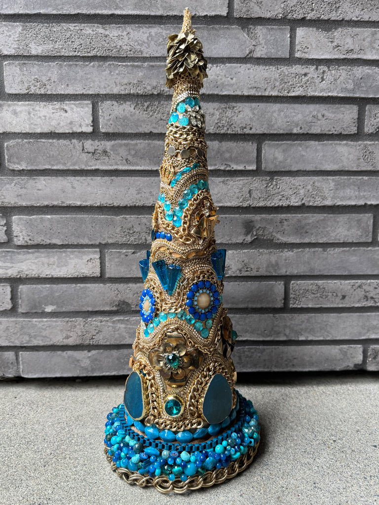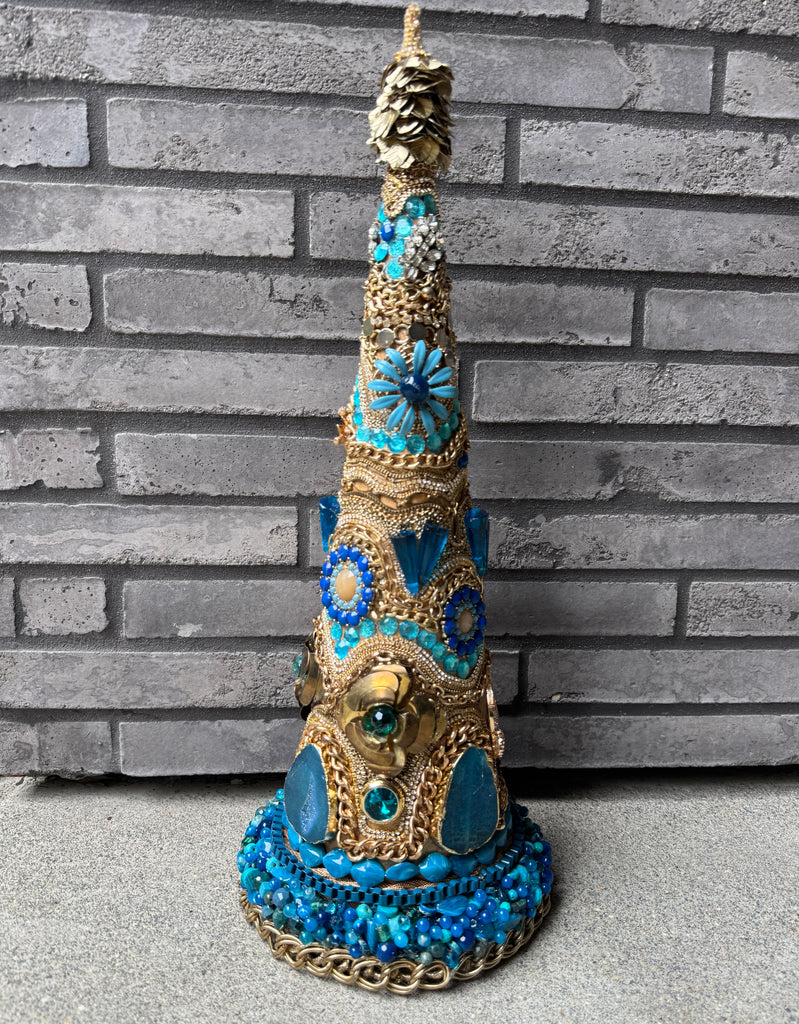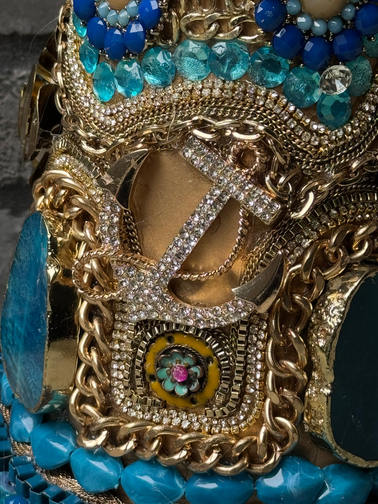 Tons of Vintage broken capri Blues & Gold-chain, jewelry, rhinestones, rhinestone Large Anchor, miscellaneous vintage charms. Real Apatite, turquoise beads.
