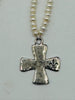 White Fresh Water Pearl Necklace with Sterling Silver Cross Medallion