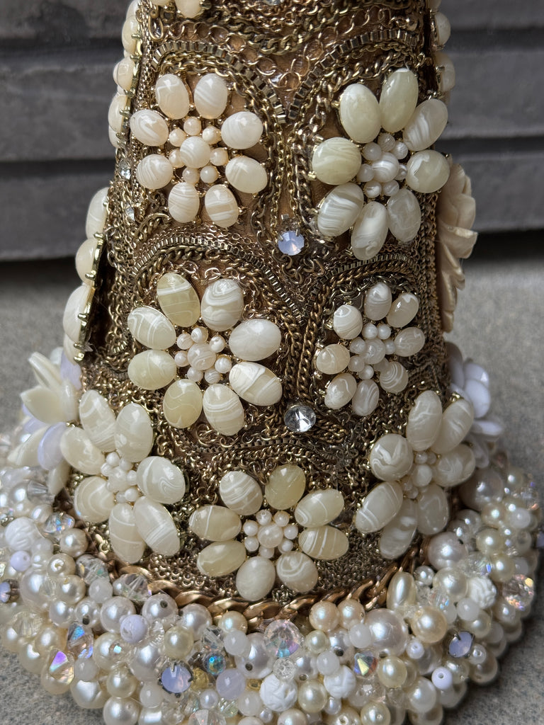 Tons of Vintage broken Gold chain, jewelry, rhinestones, vintage crystals…vtg flowers, tons of vtg flowers. Vintage carved flower.