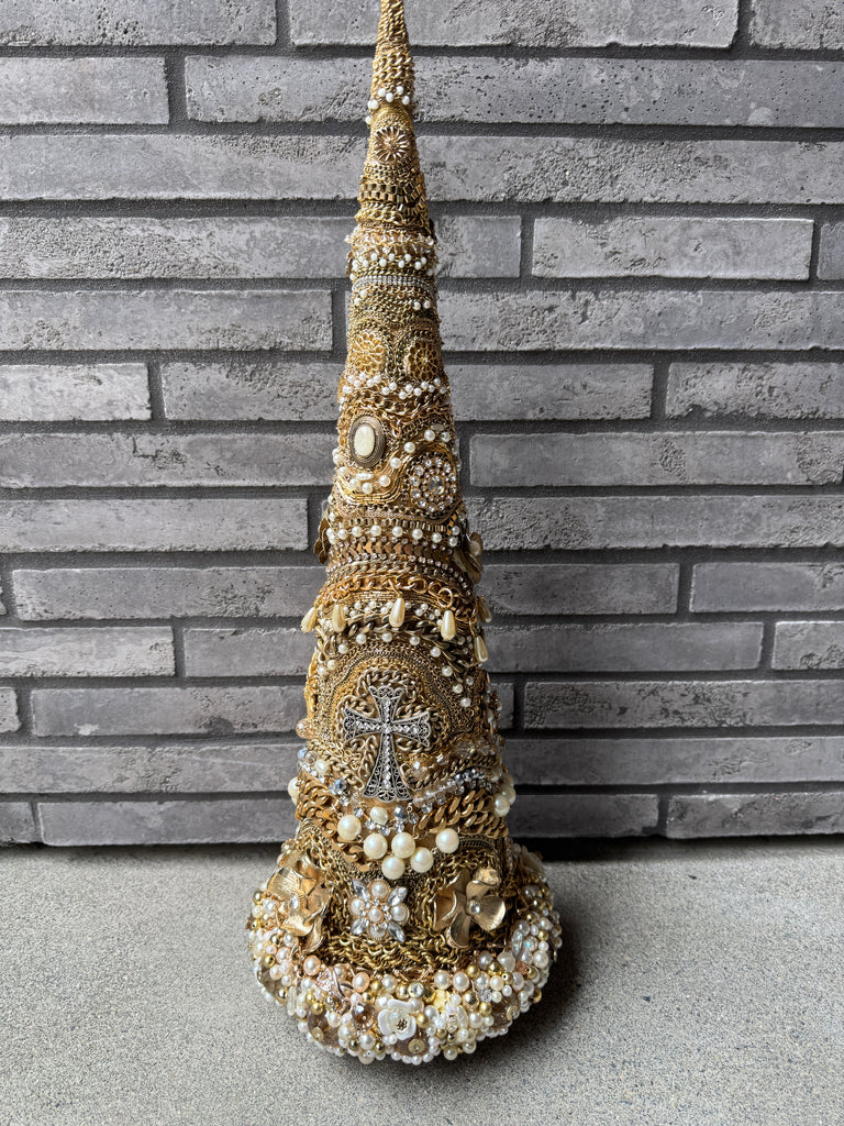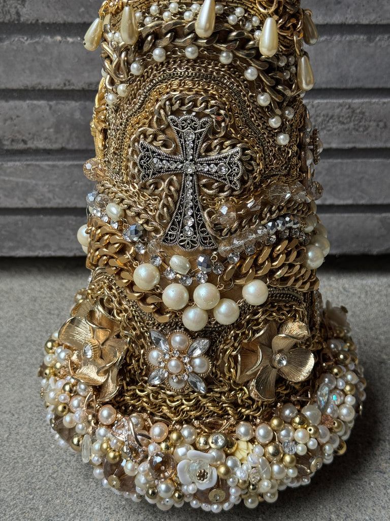 Tons of Vintage broken Gold chain, jewelry, rhinestones, vintage cross, fresh water pearls, crystals, jeweled anchor, lion